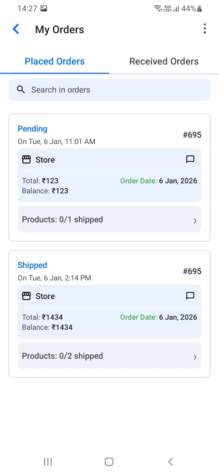 Status badges are color-coded for easy identification. Keep order and product statuses current so customers know what to expect.